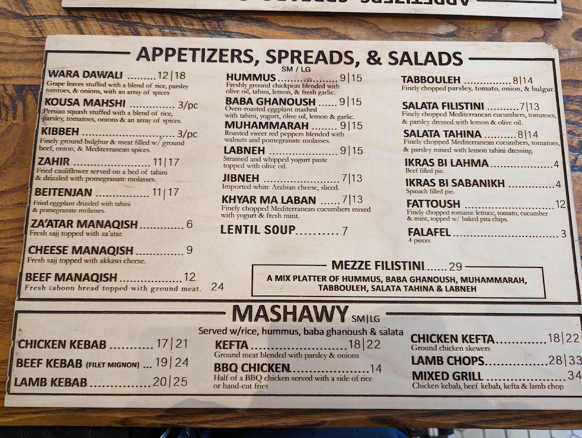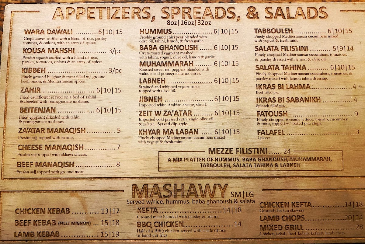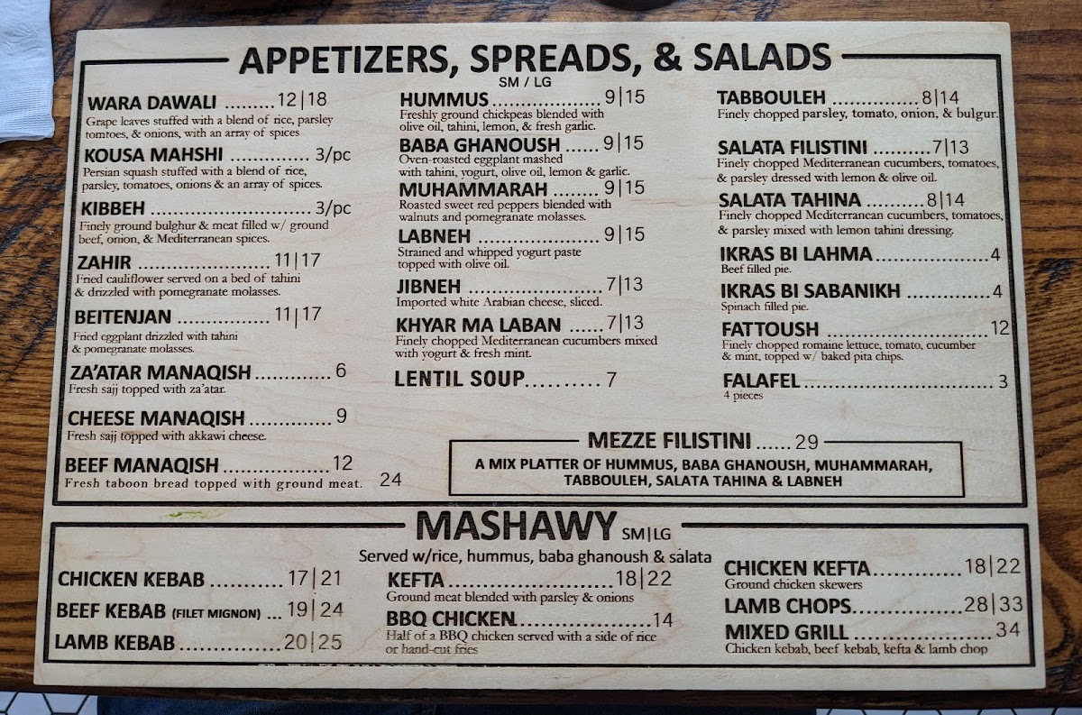 Guests can explore a variety of traditional plates, including layered specialties like Maklouba and hearty favorites such as the Falafel Platter and Kefta Bi Tahina. Light yet flavorful mezze selections—like Muhammara and fresh tabbouleh—provide perfect starters or small bites to enjoy alongside refreshing drinks like Mint Tea or the zesty Limonana.